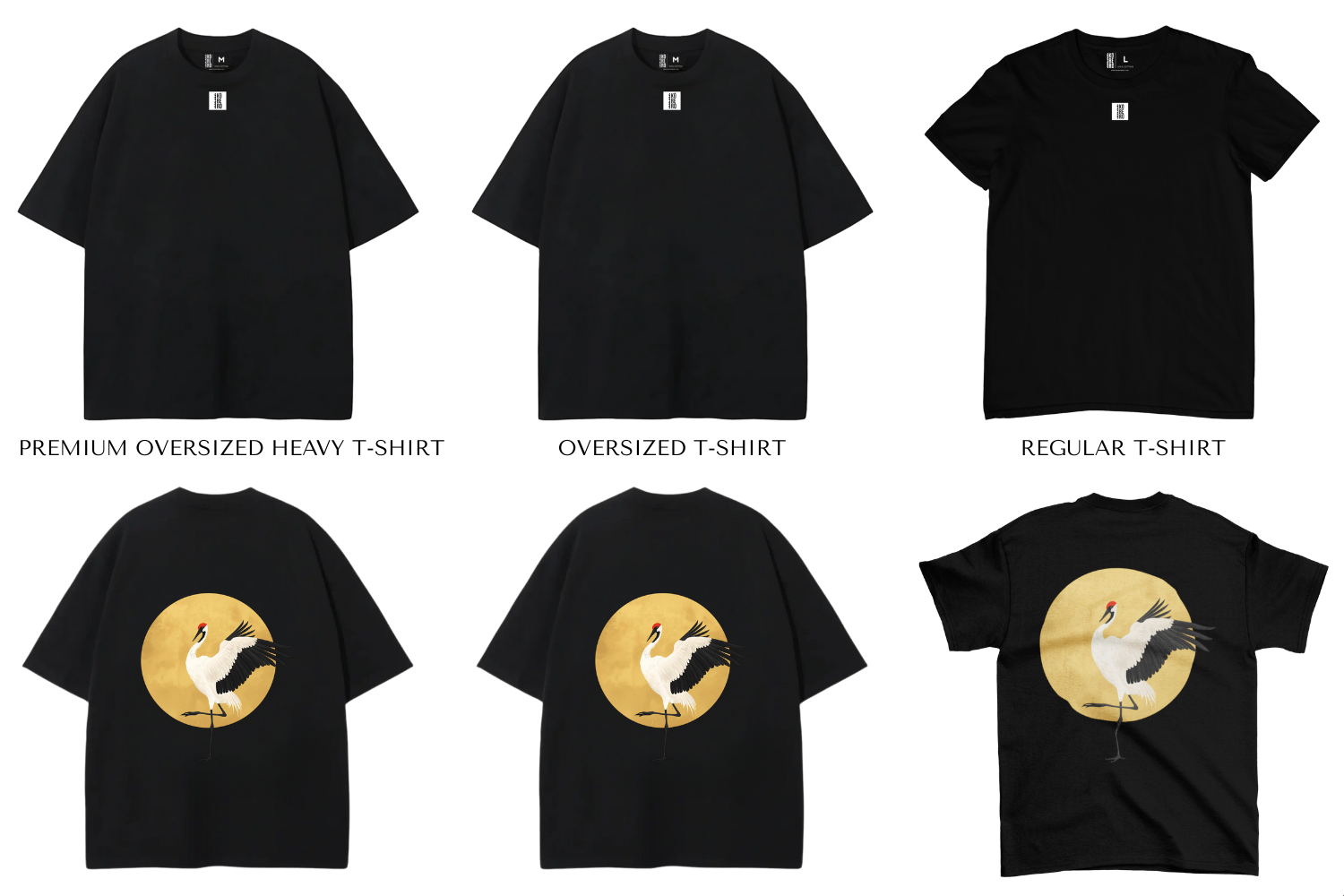 Символ на елегантност и дълголетие, жеравът се издига грациозно пред златната луна. Минималистичен дизайн за тези, които търсят баланс и вечен стил.
