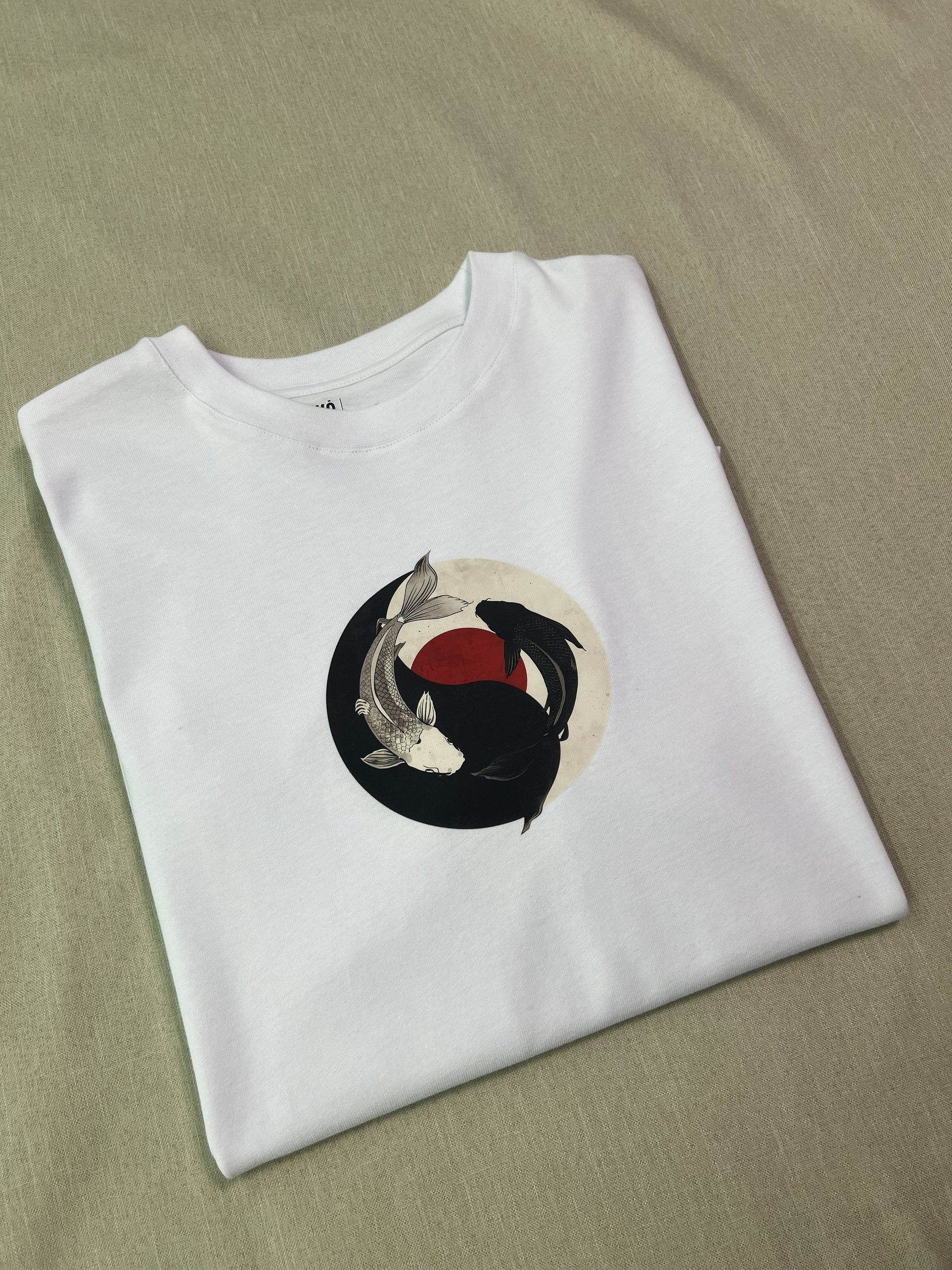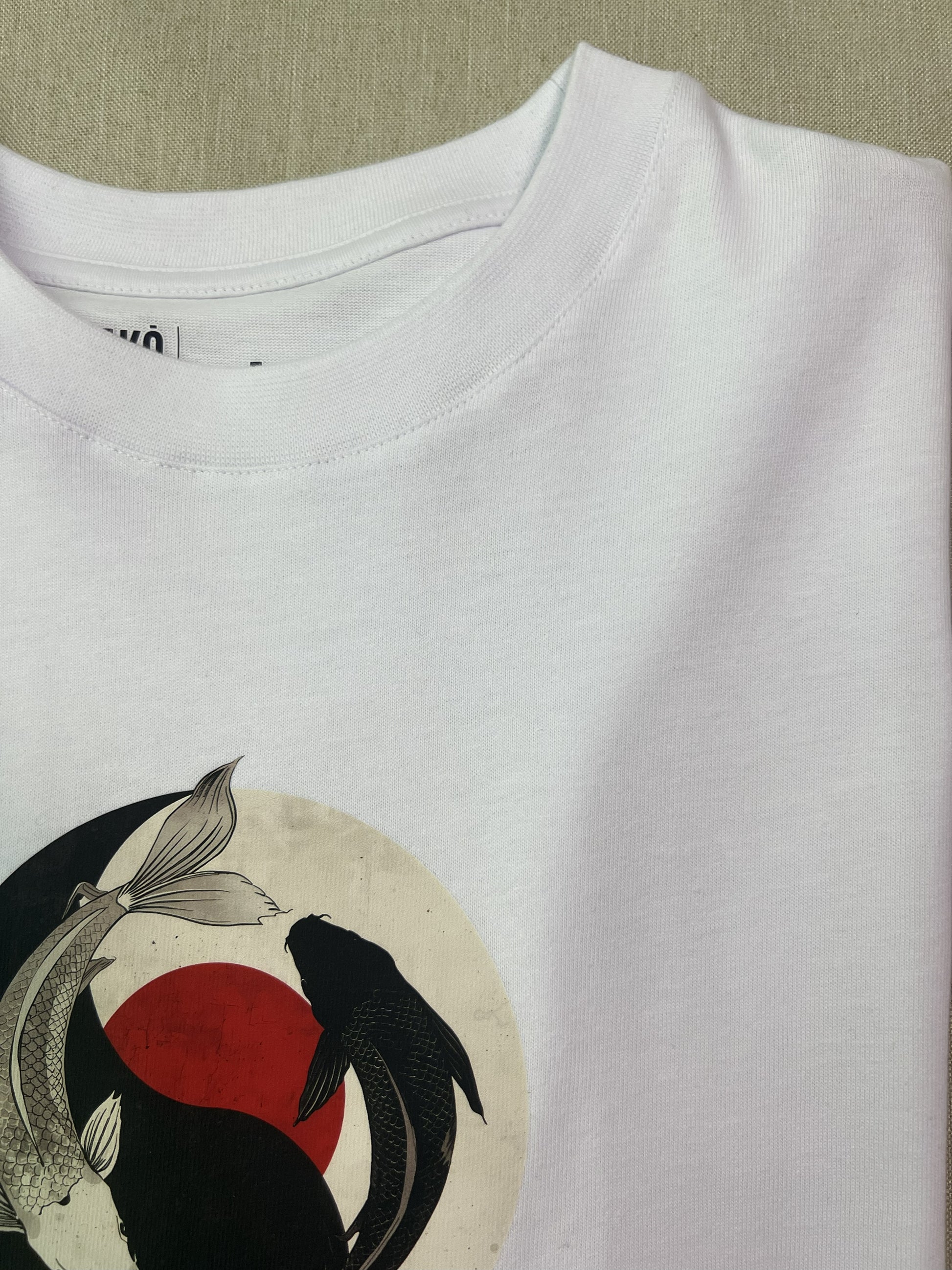 Two koi fish swim in perfect harmony, forming a powerful yin-yang symbol. A design that represents strength, perseverance, and inner peace.